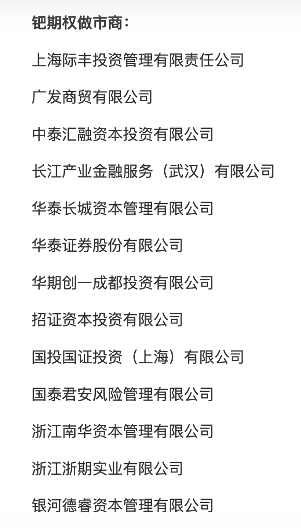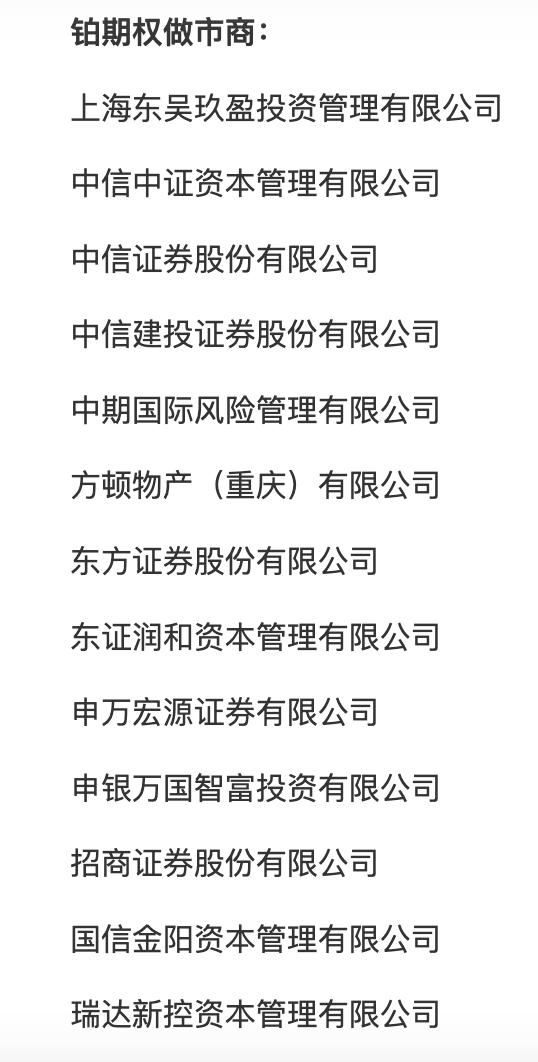 人民財(cái)訊11月14日電,廣州期貨交易所公布鉑、鈀期權(quán)做市商名單。