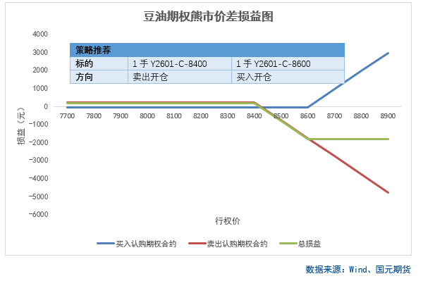 圖表3豆油期權(quán)熊市價(jià)差策略損益圖