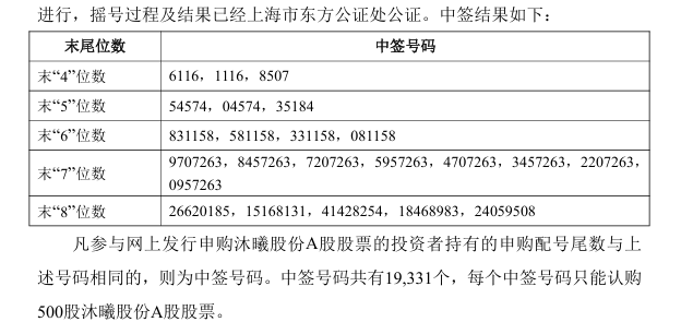 沐曦股份網(wǎng)上搖號的中簽結(jié)果如下: